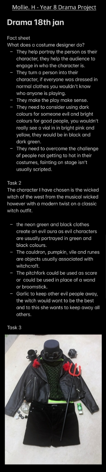 Drama projects by Maya. S, Megan. H and Mollie. H