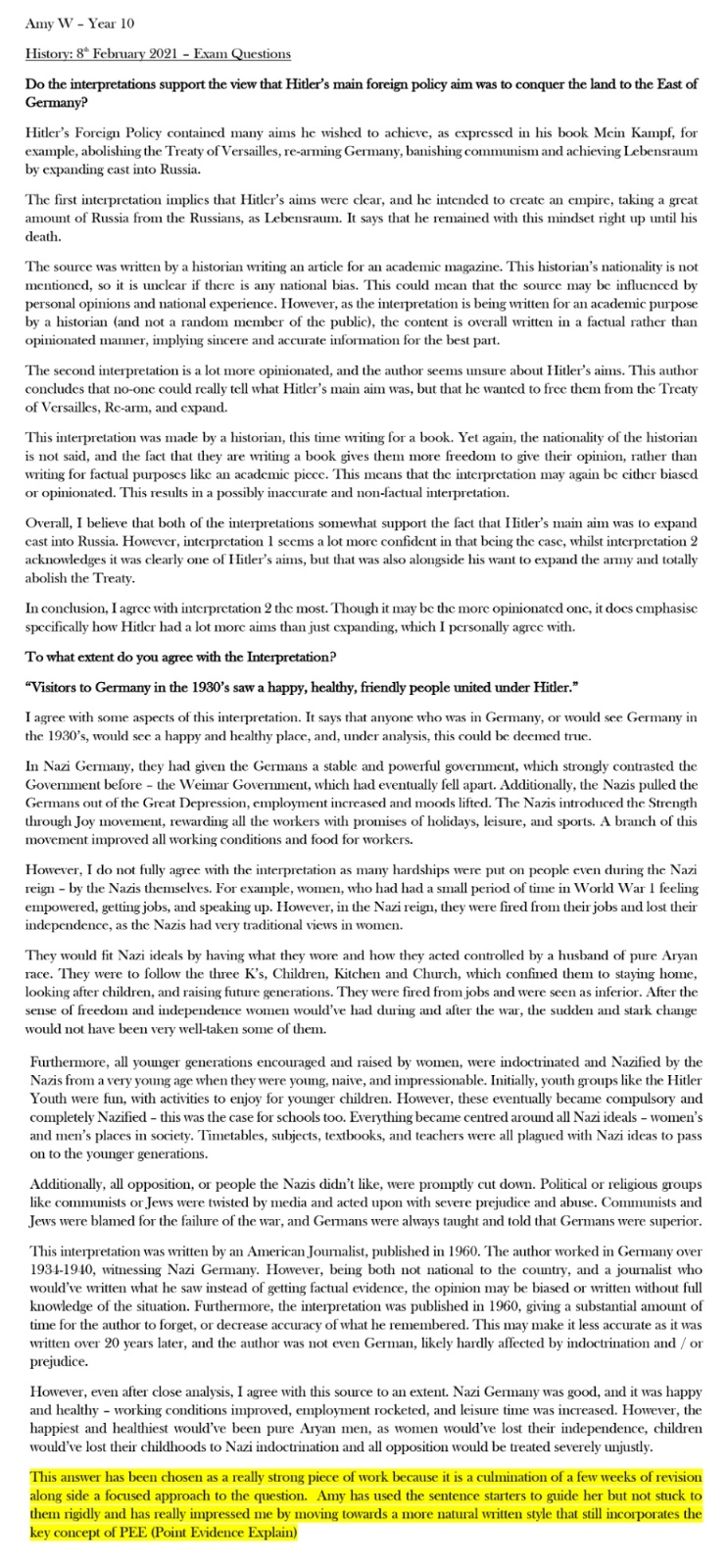 Year 10 gallery of great work