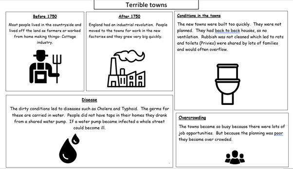 Our existing knowledge organisers were content heavy and while they would support our level 7-9 students and challenge our level 5-6 students, they would not be helpful for our students in the low attaining band. Those with a target grade of a 4 or below would struggle with the level of literacy (example below)