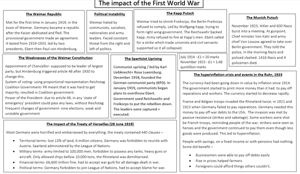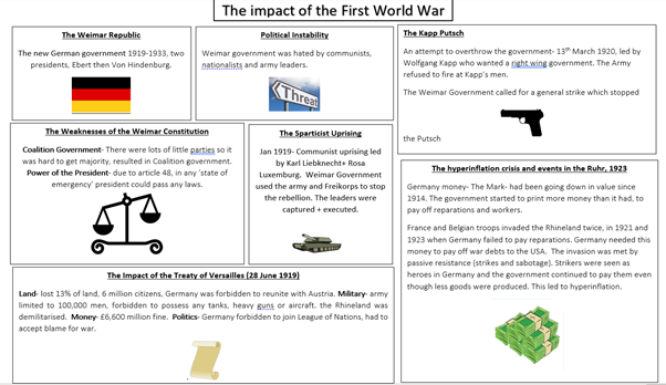 In History this year we have had a bit of a revelation. While we want to stretch and challenge all our students, so they can make the greatest progress we don’t want to hamper our athletes before they have even started the race by giving them tools that will not help them get to their end goal. With a very high percentage of our Year 11 students with SEN support this year, this is a very important time for us to review our practice and improve our provision for revision.