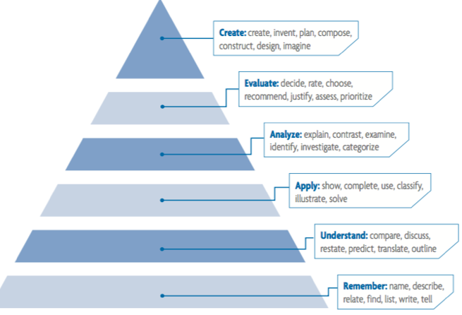 I believe the key to success when considering blended learning is planning homework to support the learning. Firstly, let’s consider our training from a few years ago- Bloom’s cognitive taxonomy. This is something that has helped our planning and I would even go a step further, it is a necessity for any Crookhorn learner. Scaffolding, and moving from receptive skills to productive skills is the foundation of any strong learning classroom. Students who can move from describing something to creating with it, in a whole new context, often do well. When we don’t have enough class time to thoughtfully guide students up the pyramid, from one cognitive domain to the next, there are problems. There are gaps in their learning. They arrive at the next level, and they struggle.