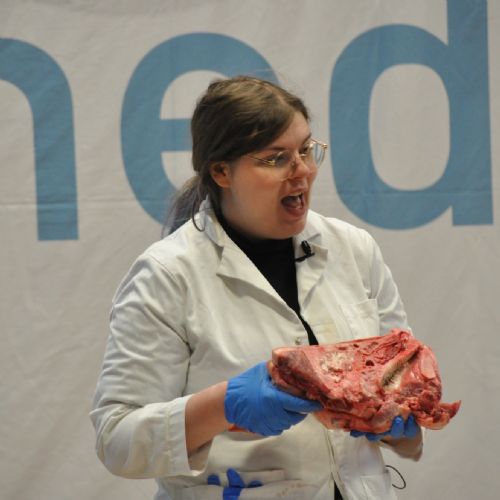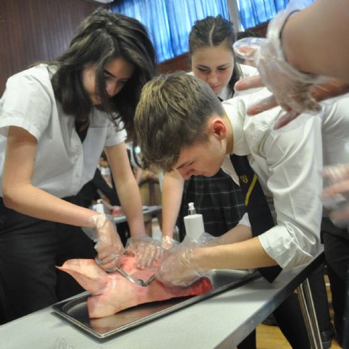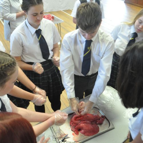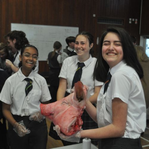 They started the day furiously making notes on how to remove the brain and eye from their pig's head, having previously been lectured on the various anatomical sections. They did not hold back, and although unsure at first, especially at the realisation of having an actual pig's head, they jumped straight in with their dissecting equipment. A large amount of teamwork and communication was necessary for the eyeball task in-order to successfully extract the organ without popping it. They moved onto the thoracic cavity, dissecting the heart and lungs, followed by a very smelly gut section.