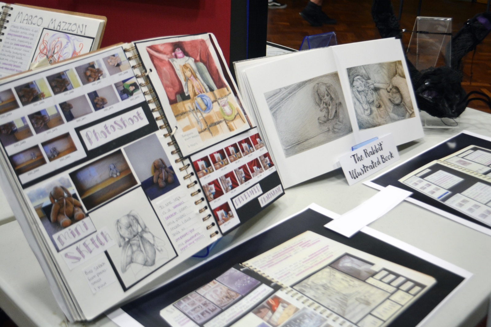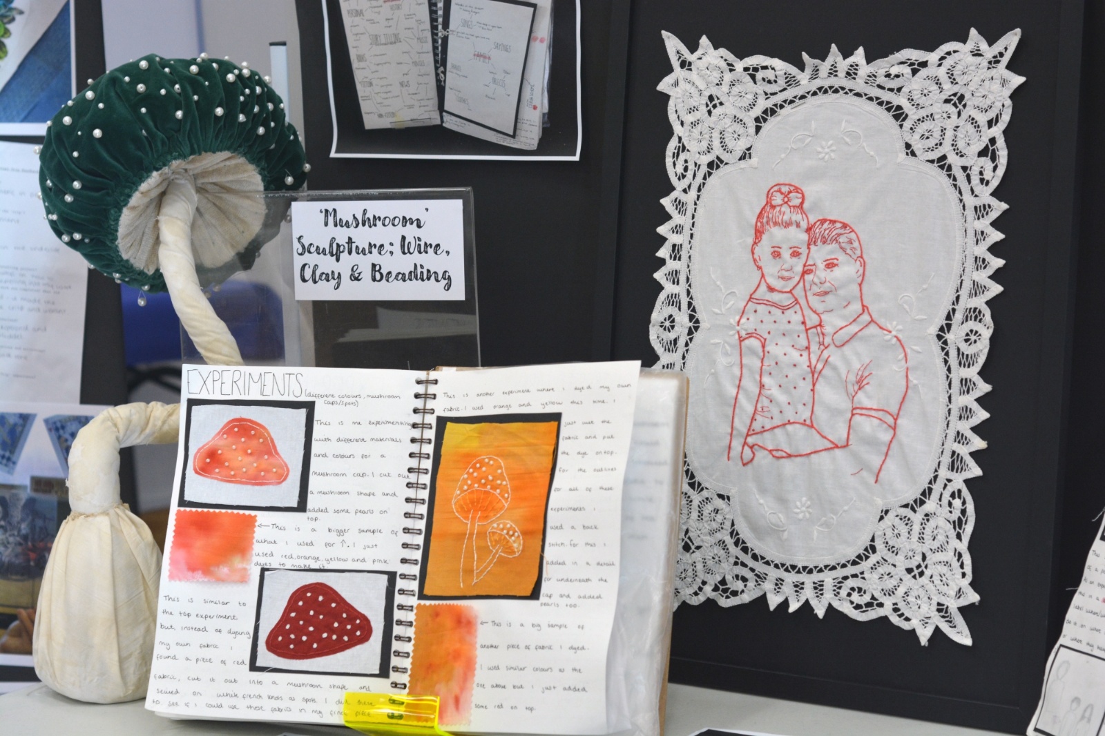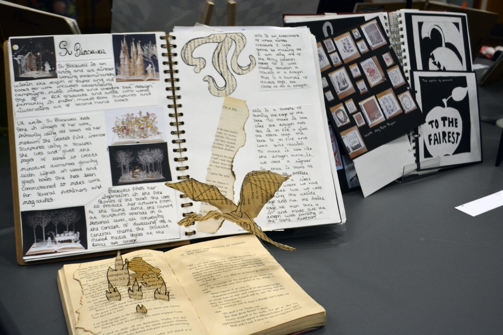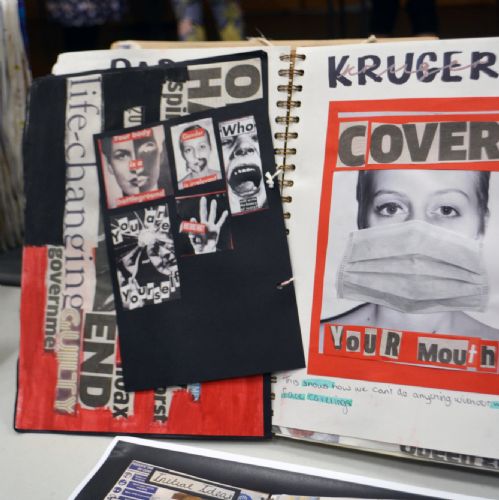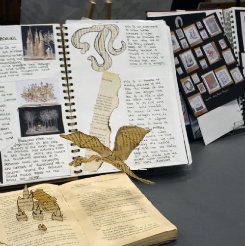 In Year 11 they were asked to work more independently to respond to the theme of ‘Story Telling’. Students could take the project in any direction and researched artists that they felt represented their chosen path. Through months of experimentation and development, students were able to create final pieces that were both personal and accomplished. Their sketchbooks record their process.