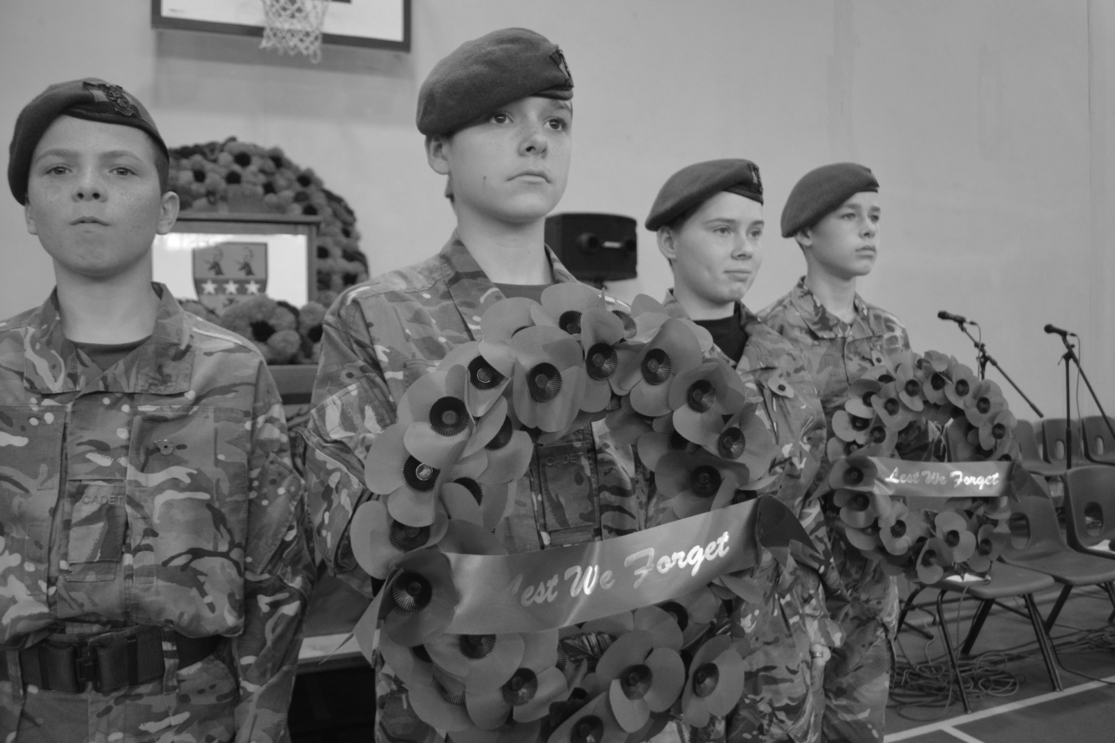 The Act of Remembrance culminated with our student cadets placing poppy wreaths at the front of the stage while our student Rock Choir performed an acoustic version of 'Times Like these' by the Foo Fighters, before the whole College participating in a two-minute silence at eleven o'clock.