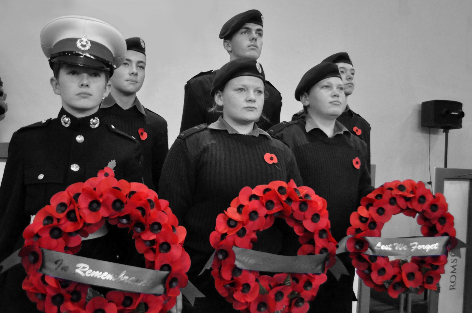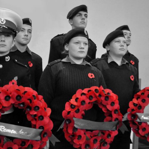 The Act of Remembrance culminated with our student cadets placing poppy wreaths at the front of the stage while our student Rock Choir performed an acoustic version of 'Sound of Silence' by Simon & Garfunkel, before the whole College participating in a two-minute silence at eleven o'clock.