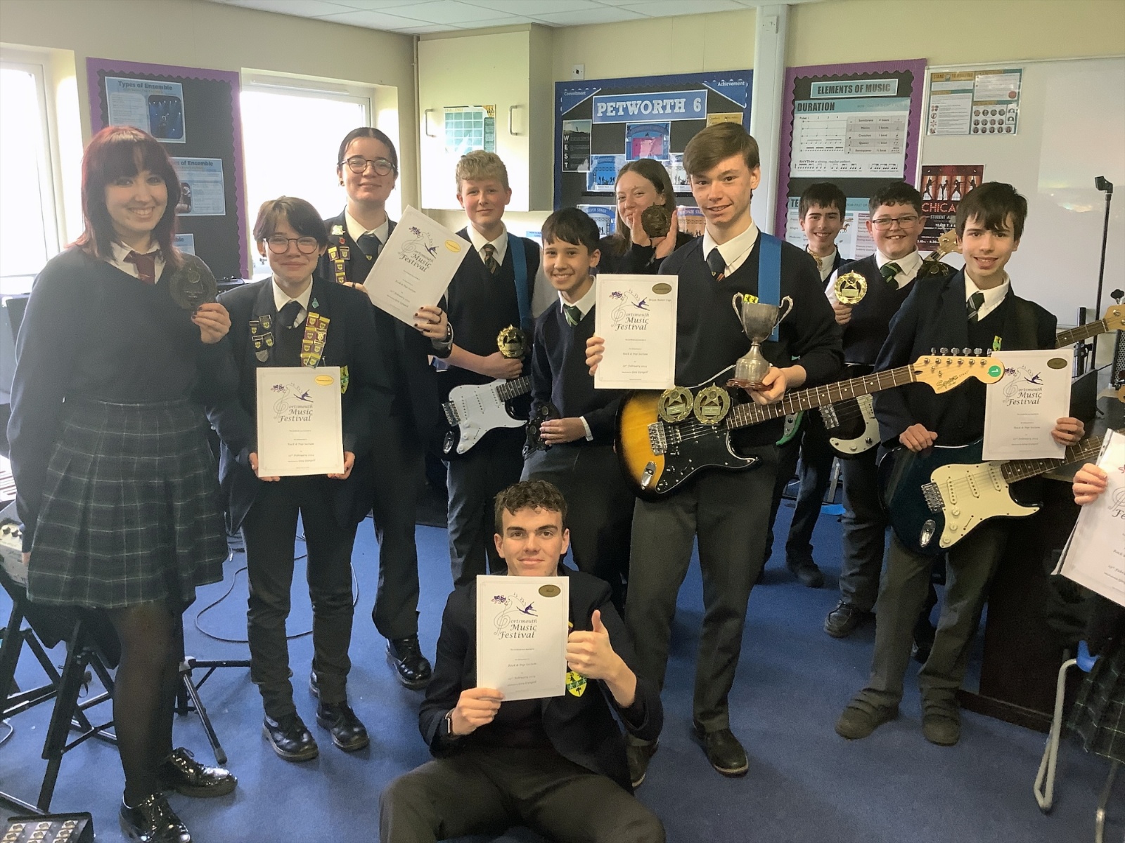 On Friday 23rd February, for the first time, we hosted this year’s Rock & Pop section for the Portsmouth Music Festival in our Main Hall. This gave our young musicians from Crookhorn the opportunity to perform on stage with professional sound and lighting, thanks to LiveWire, and compete against young musicians and bands from other local schools and external entrants. We had a great turn out in terms of audience and all performers were given constructive feedback from the adjudicator, Guy Gyngell who runs a local artist management and production company. Overall, the whole evening had such a great atmosphere, and our students were a credit to the College!