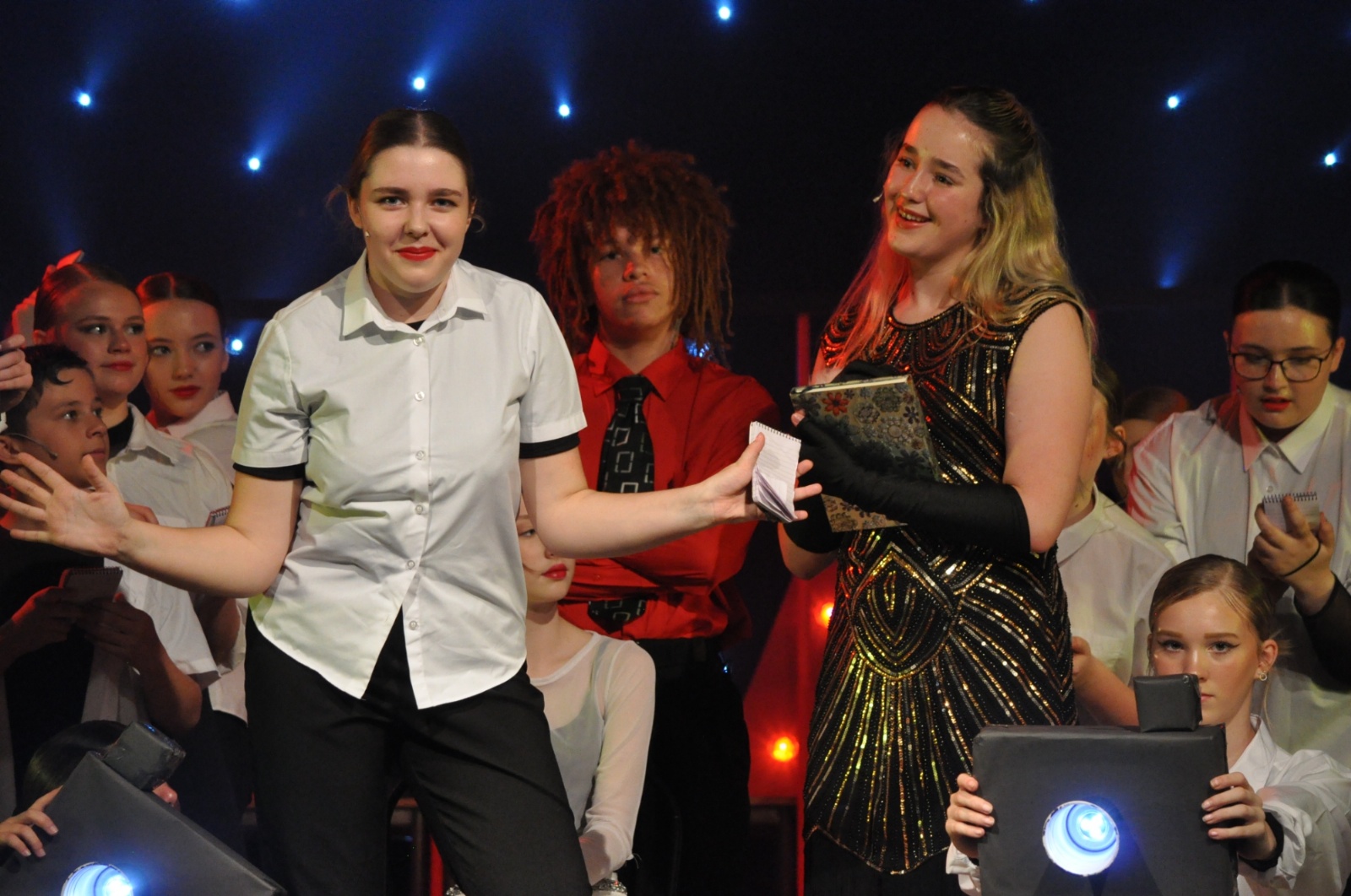 This also extends to our volunteers running the show backstage in the wings with props, costumes, sets, lights and sounds. Our backstage and technical crew, which was made up of students and some of our ex-year 11’s who all did an amazing job.
