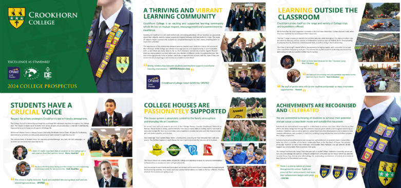 You will have the opportunity to hear from our Headteacher about her vision for education at Crookhorn and from our Head Boy / Head Girl about what it’s like to be a student at the College.