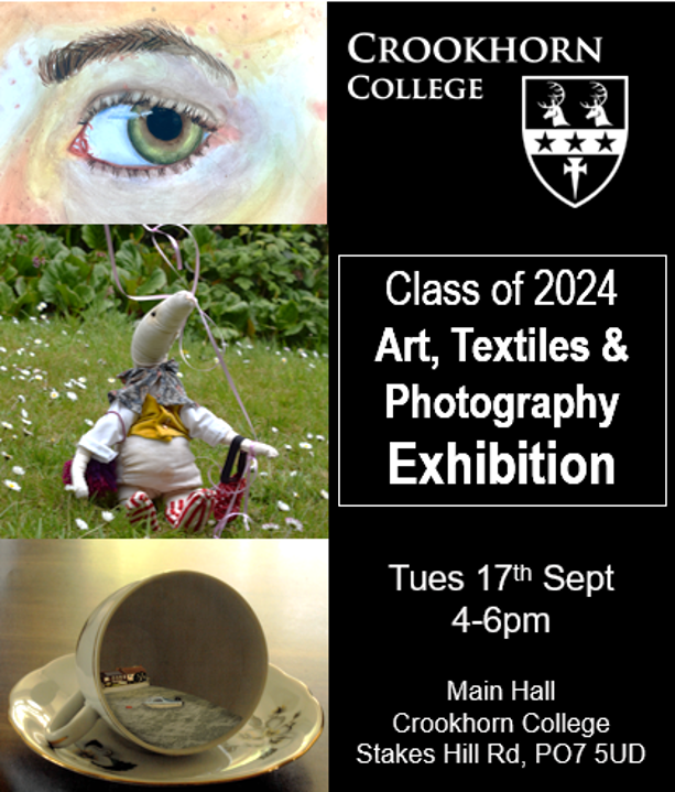 Join us at Crookhorn College for the Class of 2024 GCSE Art, Textiles & Photography Exhibition!
