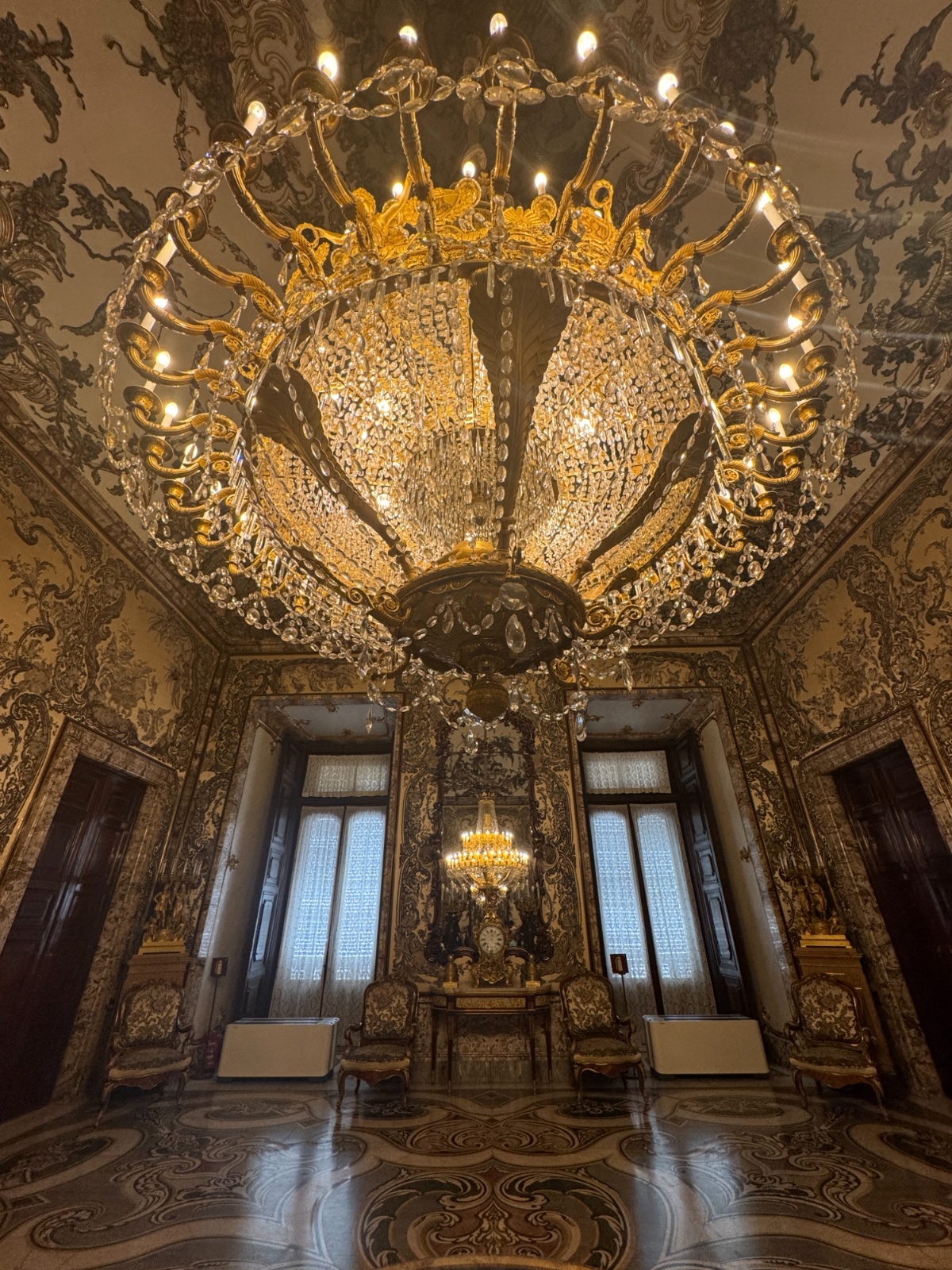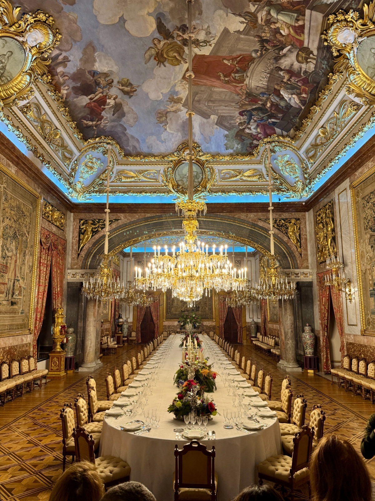 The tour began in the courtyard, looking out over the Casa De Campo. Once inside, our group was able to tour through the many rooms of the Palace, including the Throne Room, the Banquet Hall, and the famous Hall of Mirrors. Each room we entered was more impressive and grand than the last, showcasing decadent furnishings, stunning ceiling murals and large, opulent chandeliers.