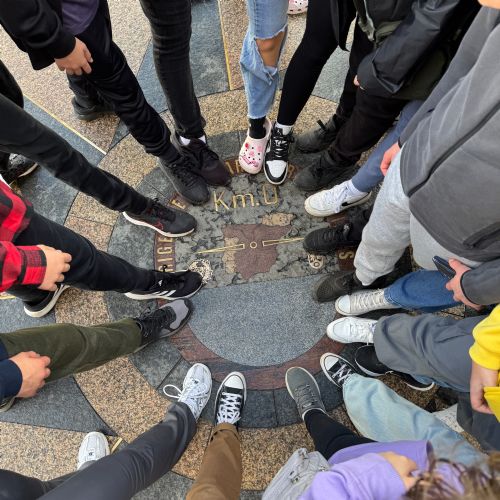 Recharged and ready, we headed for lunch at the Mercado De San Miguel, via the Puerta del Sol and stood on the Kilometro cero, which is the geographical centre of Spain. At the Mercado, students got to enjoy many Spanish delicacies, including; bocadillos de jamón, Queso, calamari and empanadas.