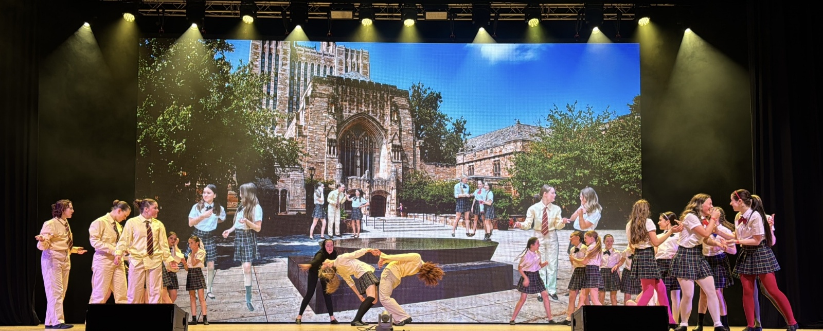 Students arrived at the Guild Hall around 1pm, enthusiastic and ready to showcase their talents. After two onstage rehearsals and a warm-up, it was time to go to our green room for hair, makeup, and costuming before the doors opened at 7pm to a sold-out audience of parents, friends, and school staff coming to support the array of talent on the stage.