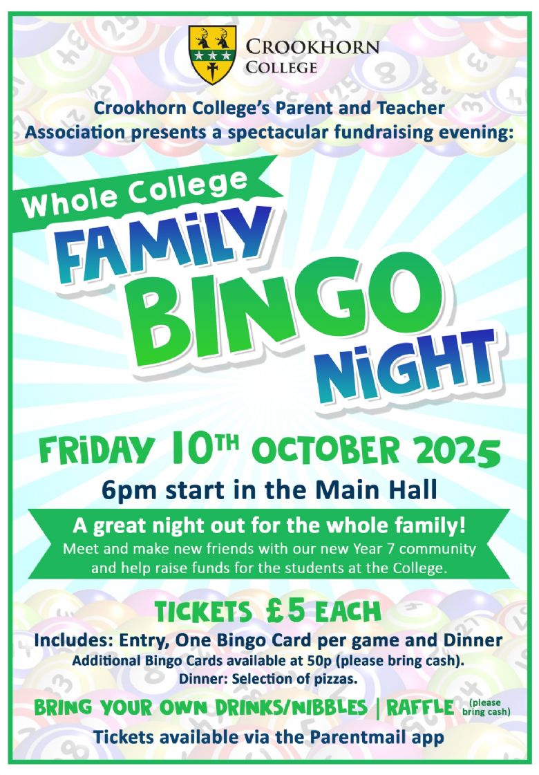 We would love to see you at our Bingo Night, which raises money for our students and is proudly run by our PTA. It’s always a great evening with laughter, prizes, and plenty of fun. It’s also a brilliant way to experience the ethos of the College and get to know us better.