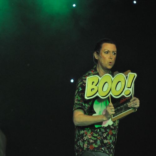 Throughout the performance, the characters faced a series of hilarious Bushtucker-style trials, with help from some very enthusiastic student audience members, all in an effort to win stars that could be exchanged for food.
