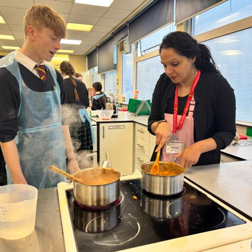 Throughout the day, students learnt how to make chicken curries and chapatis from scratch, developing practical cooking skills and exploring the flavours of Indian and Pakistani cuisine. All ingredients were generously provided by Waitrose, allowing students to focus fully on learning and creativity in the kitchen.