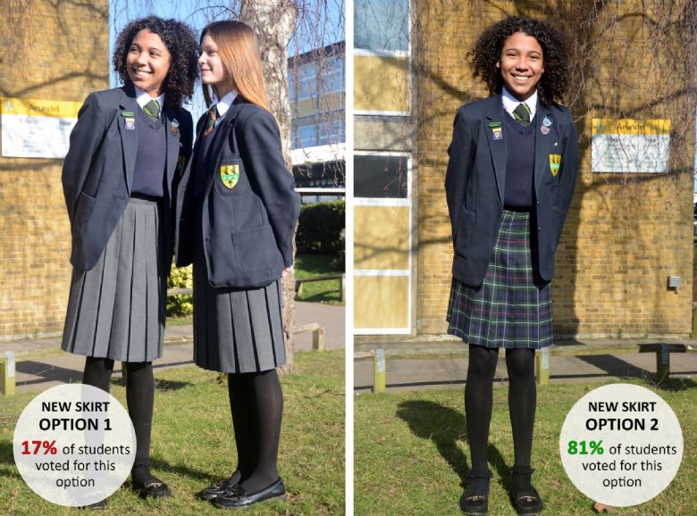 In recent weeks the College has consulted with Governors, staff and students about updating the College uniform, by introducing a new style of skirt that would meet these requirements. Students were given the choice to pick from two new options and cast their vote to which style they would like to wear, via an online survey on Its Learning.